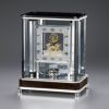 ガラス越しの空間に見えるクオーツ・スケルトンムーブメントの
