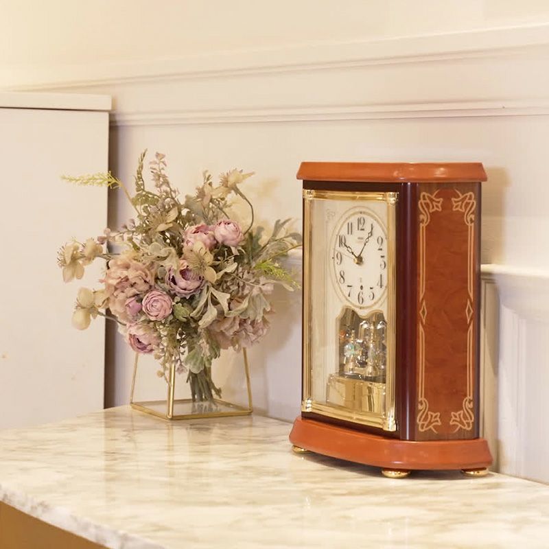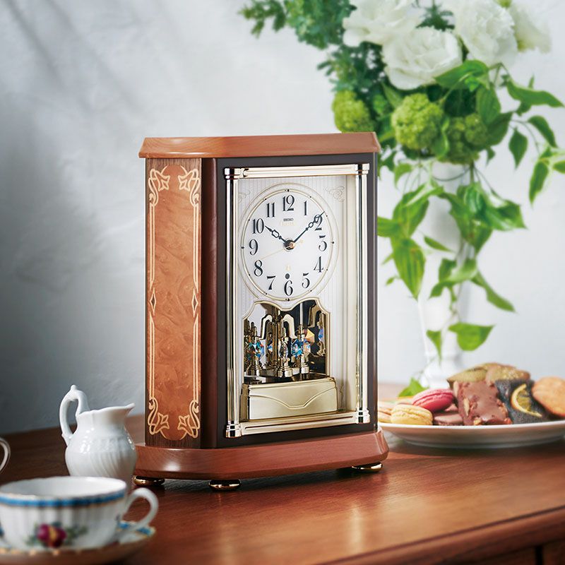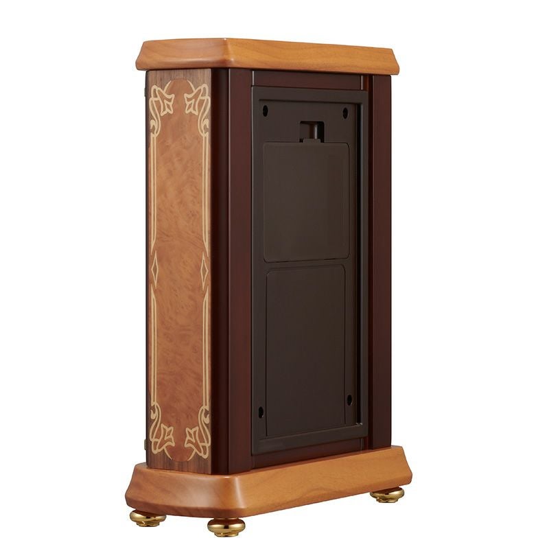 カテゴリトップに戻る サイズ 306×256×120(mm) 重量 2.2kg 電池 単3アルカリ電池×3 主な素材 木枠(木材・茶木地塗装 一部象嵌つき板貼り・薄茶木地塗装)