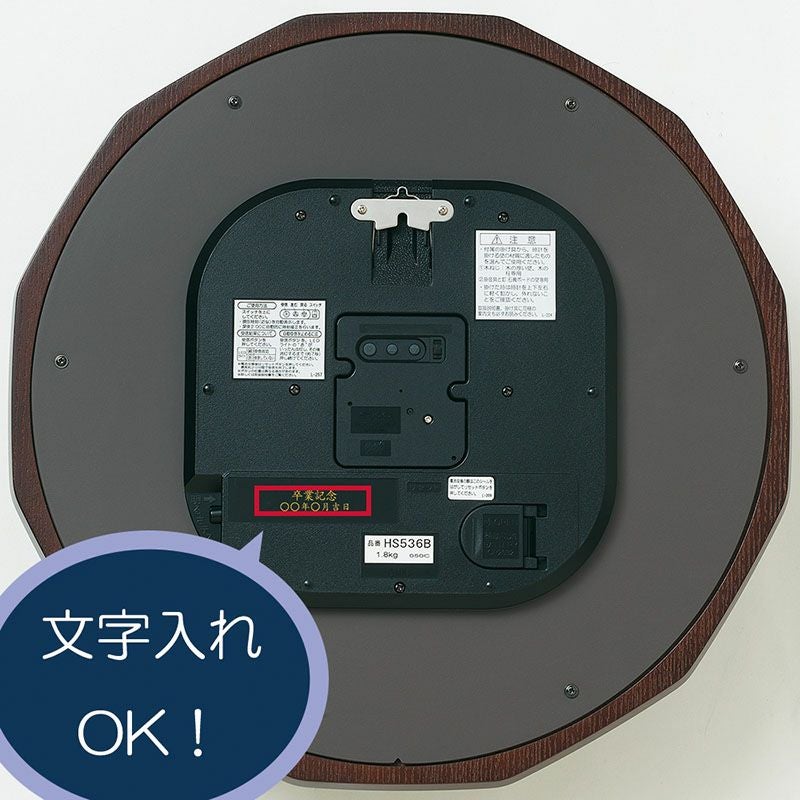 カテゴリトップに戻る サイズ 352×352×35(mm) 重量 1.8kg 電池 補助電池:リチウムボタン電池SB-T51(CR2032)×1 主な素材 木枠(MDFつき板貼り・茶木地塗装)