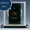 金属、石、ガラスの三つの異なる素材から構成されたシンプルな枠の中に、