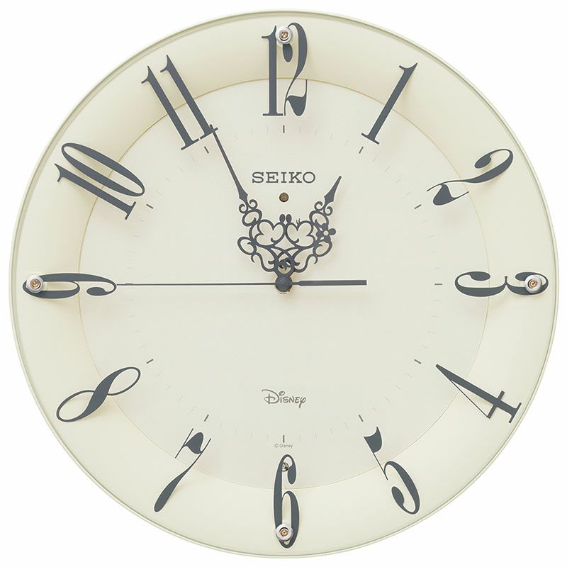 人気のKiss&Heartシリーズ。ミッキーとミニーが一時間に一度キスをするロマンチックな針の掛時計。
