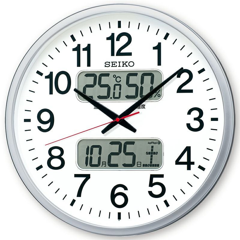 視認性の高いデザインに、カレンダー、温度・湿度表示がついた電波掛時計