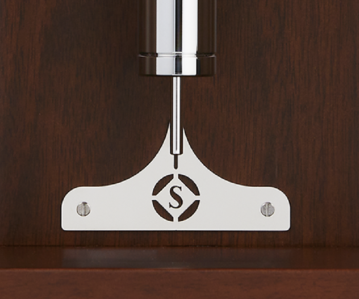 「丸角Sマーク」を振り子時計に必須の録見飾り板に採用。