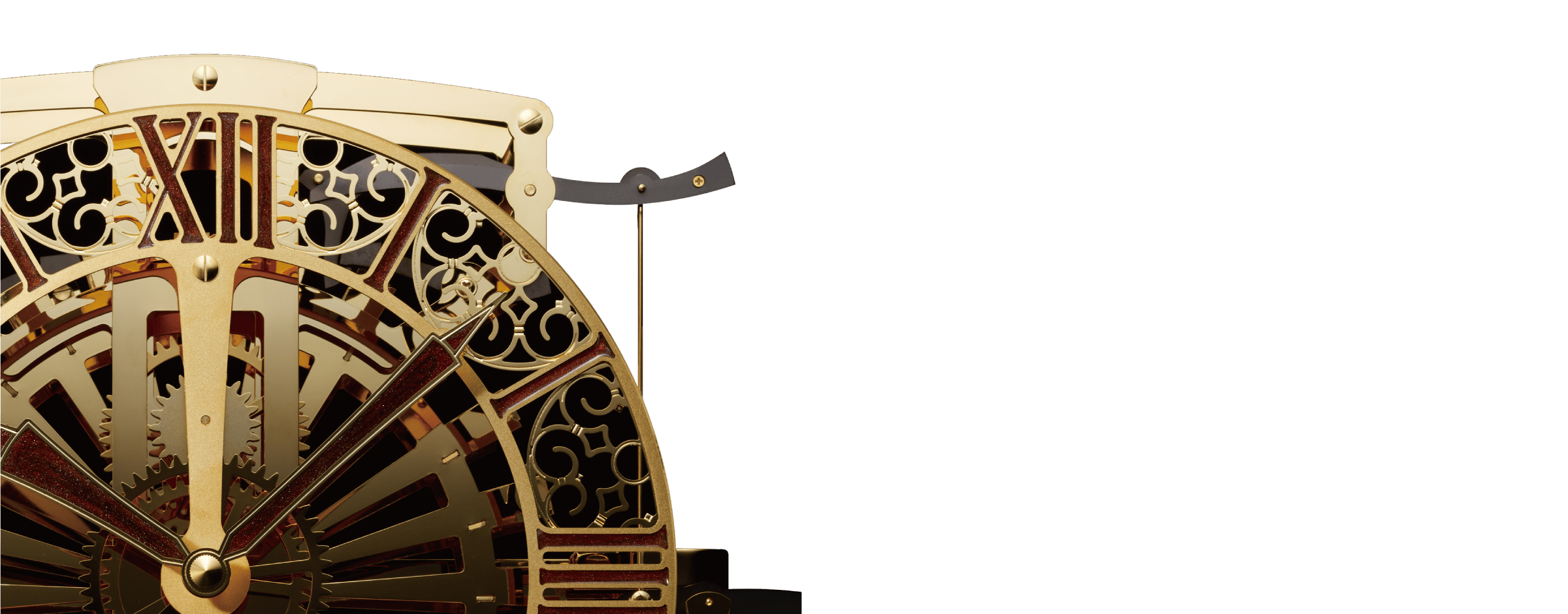 悠久では、水の代わりに鋼球を使用しているため、”水運儀象台”とは異なる発想と作動原理の開発が必要となりました。鋼球の落下で回転する回転機構、その力を次々と正確に伝達していくレバーの役割。衝撃の緩和、逆回転などの誤作動防止、そして回転タイミングを一定にコントロール。 ”水運儀象台”では解決できなかった耐久性の向上と安定性を実現しています。もし当時に応用できれば専従者の労力も大幅に削減できたはず。900年の歳月を超えて融合した技術・・・それがファイブレバー脱進機構です。