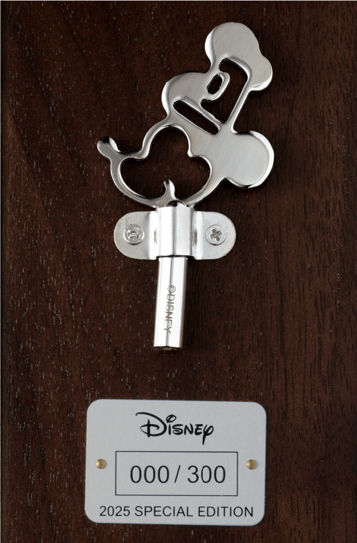 巻き鍵風オーナメントにはミッキーマウスのシルエット。